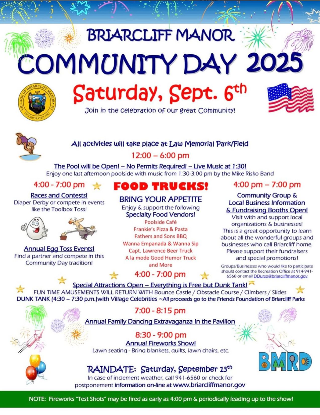 Sat., Sep 6 | Law Memorial Field, Briarcliff Manor | 12-9p | Admission FREE