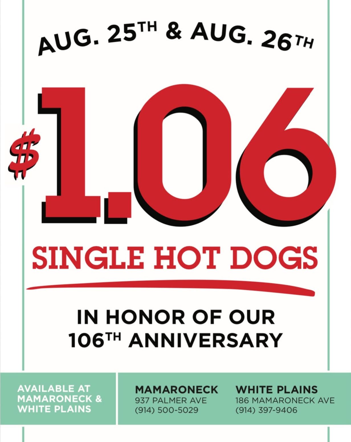 Tue., Aug 26 | Celebrate at both locations: 186 Mamaroneck Ave., White Plains & 937 Palmer Ave., Mamaroneck | Available until close