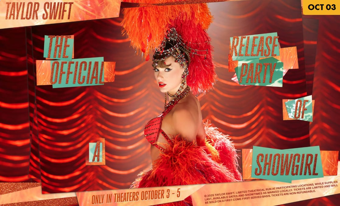 Alamo hosts âThe Official Release Party of a Showgirlâ Fri. through Sun., an 89-minute celebration of Taylor Swiftâs new Life of a Showgirl album. The screening includes a music video world premiere for âThe Fate of Opheliaâ and behind-the-scenes specials.