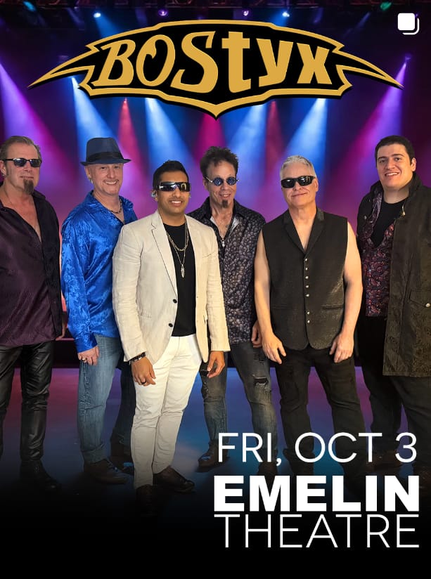 Gonna hitch a ride to Emelin Theater on Friday for Bostyx, a group of pro musicians whoâve come together to pay tribute to 70s / 80s rock icons, Boston & Styx. The showâs been reviewed as⊠âitâs as close as you can get to seeing the originals in their prime.â