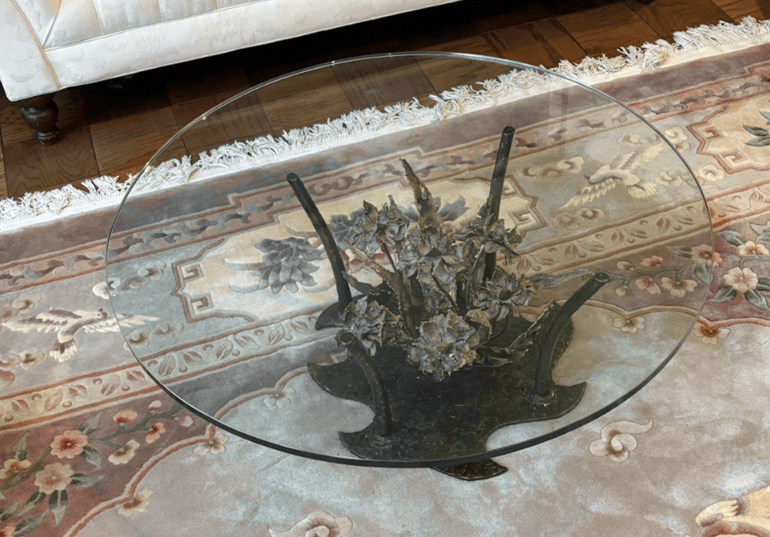 Sale highlights include: a Silas Seandel coffee table, a C.F. Martin parlor-style acoustic guitar, Lalique stemware, dozens of collectible decorative Christmas pieces from "The Village Collection by St. Nicholas Square", an assortment of cowboy boots, as well as artwork, furniture and other interior decor.