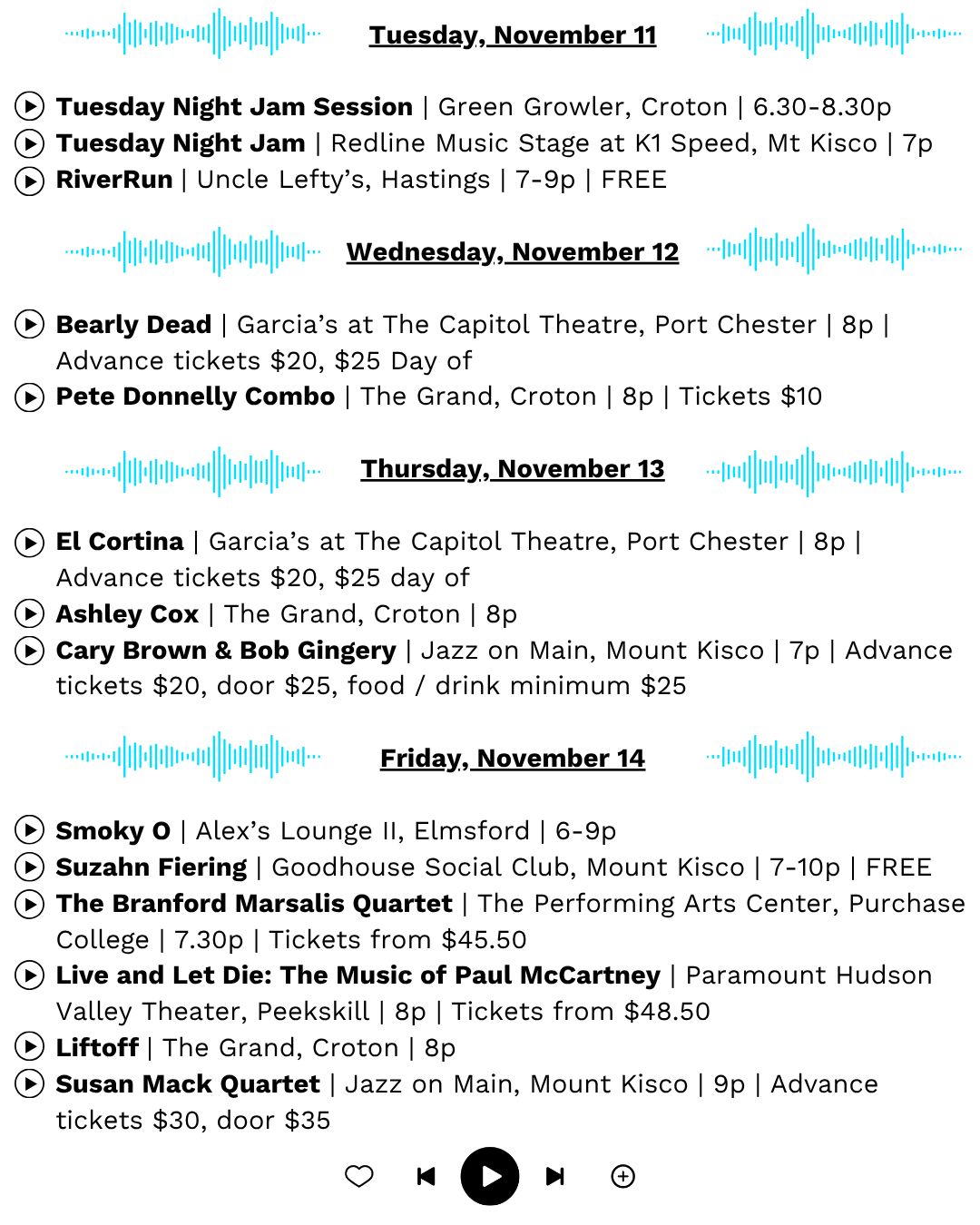 Wed., Nov 12 | Soul Brewing Co., Pleasantville | 6.30p | Check link for tickets & details