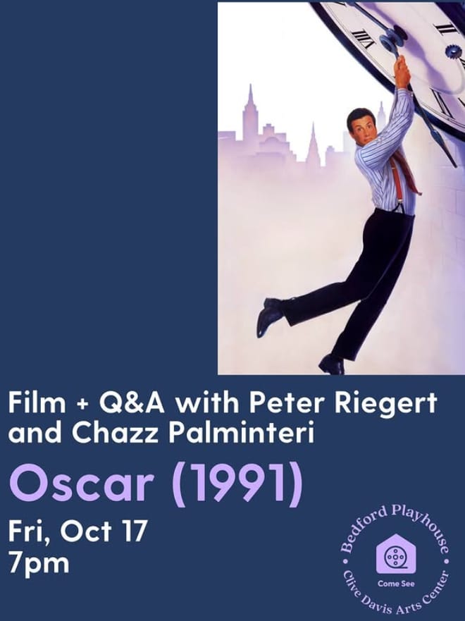 Chazz Palminteri (A Bronx Tale) and Peter Riegert (Animal House) drop by Bedford Playhouse this Friday night for a special screening of the 1991 cult-classic comedy Oscar followed by a Q&A.