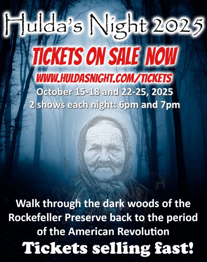 Walk through Rockefeller State Park Preserveās carriage roads and hear tales of its history, legends and Hulda āthe witchā through an immersive four act live performance. Check the above link for more details on the hike and show run time.