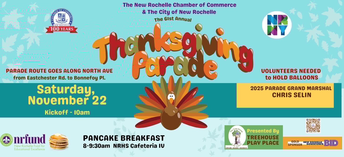 Post up on North Ave. and catch Mighty Mouse, Bugs Bunny, Scooby-Doo and friends take to the skies for the 61st annual New Rochelle Thanksgiving Parade. The friendly characters will be joined by 11 marching bands, 10 floats, dancers, singers & more!