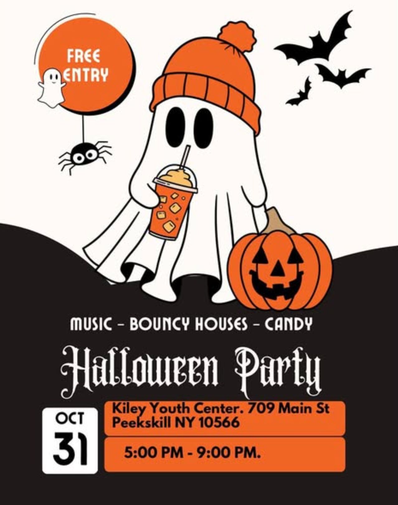 Halloween Party⊠music, bouncy houses & candy | Fri., Oct 31 | Kiley Youth Center, Peekskill | 5-9p | FREE